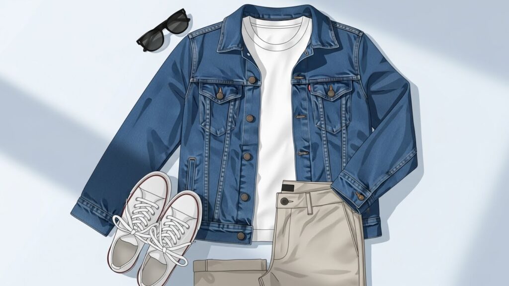 For 2026, denim jackets look best when styled with neutral tones, creating a clean and modern outfit.