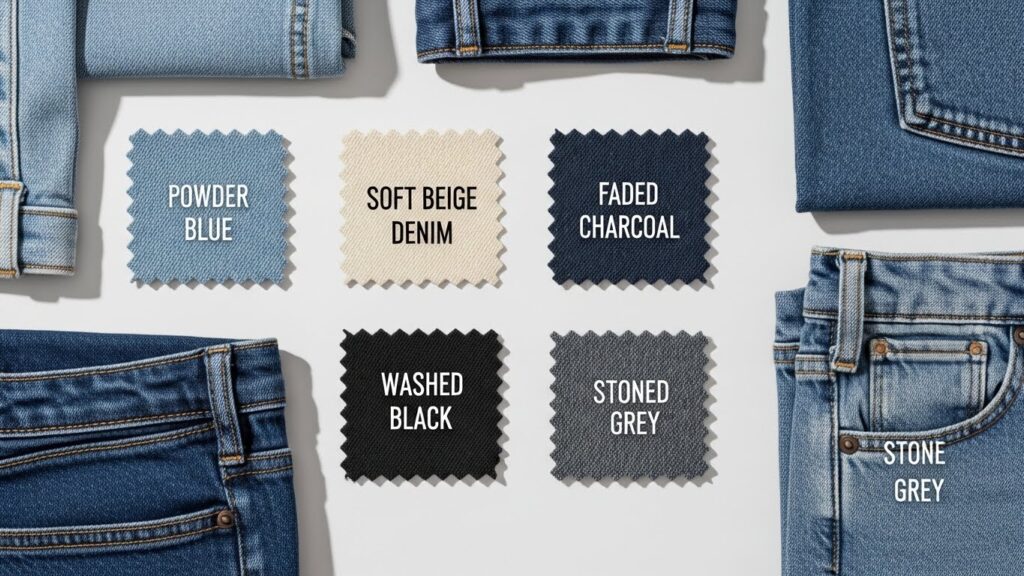 In 2026, denim colors are more diverse, subtle, and fashion-forward. Here are the shades dominating this year’s denim color palette 2026: