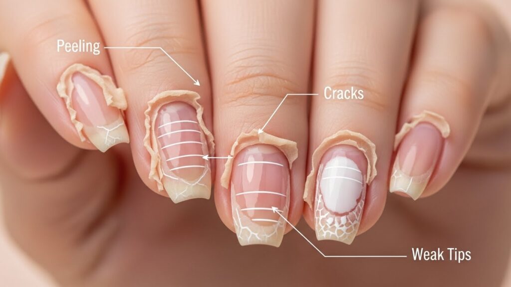 - Peeling Layers: If the tips of your nails seem to split into thin sheets, you have peeling layers. This is often a sign of being over-exposed to water or being too rough during polish removal. It makes your nails look uneven and leads to brittle nails.