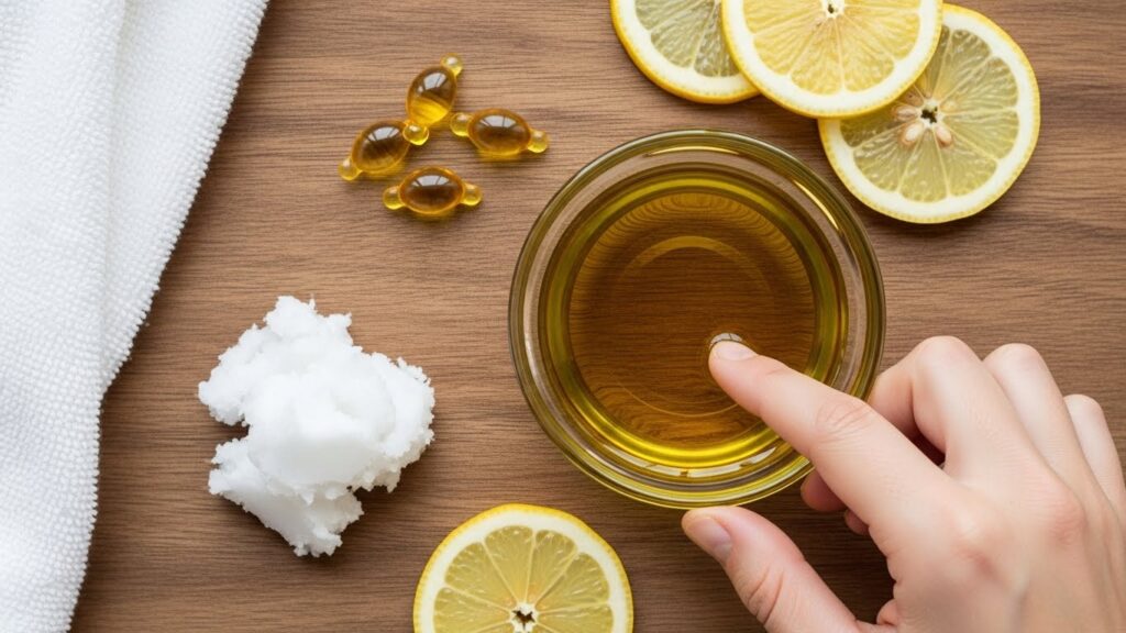 - Coconut Oil Soak: Coconut oil is a fantastic natural moisturizer. It is easily absorbed and can help hydrate dry, brittle nails. Warm a small amount of oil and soak your fingertips for 10–15 minutes. This is one of the best home remedies for nails and is highly effective at reducing peeling layers. Do this daily for the best results!