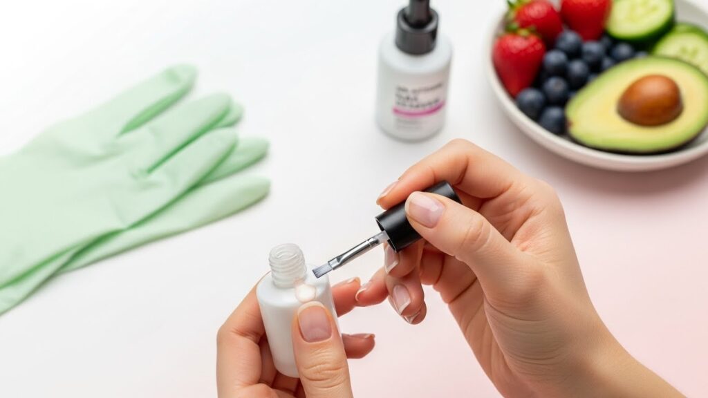 - Avoiding Water Exposure: Too much water can make your nails swell and then shrink, which leads to bracks and breakage and makes them prone to peeling layers. Always wear gloves for cleaning (dishes, laundry) and limit long soaks in the bath. Keeping your nails drier is an essential nail strengthening tip.