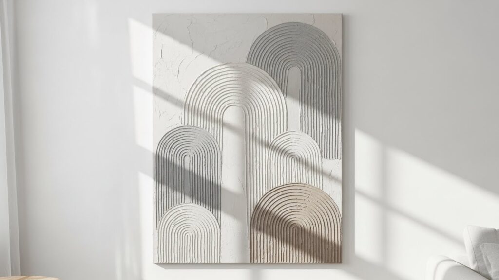 Flat paintings are out, and 3D textured art is in. This 2026 trend focuses on the ‘Wabi-Sabi’ aesthetic—finding beauty in imperfection. This is one of the easiest DIY wall decor ideas because it requires zero drawing skills.