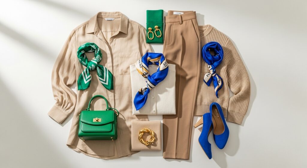 Neutrals like white, beige, cream, tan, grey, and black help balance bold colors. If you’re unsure, pair one bright color with one neutral. This rule always creates a clean, polished look.