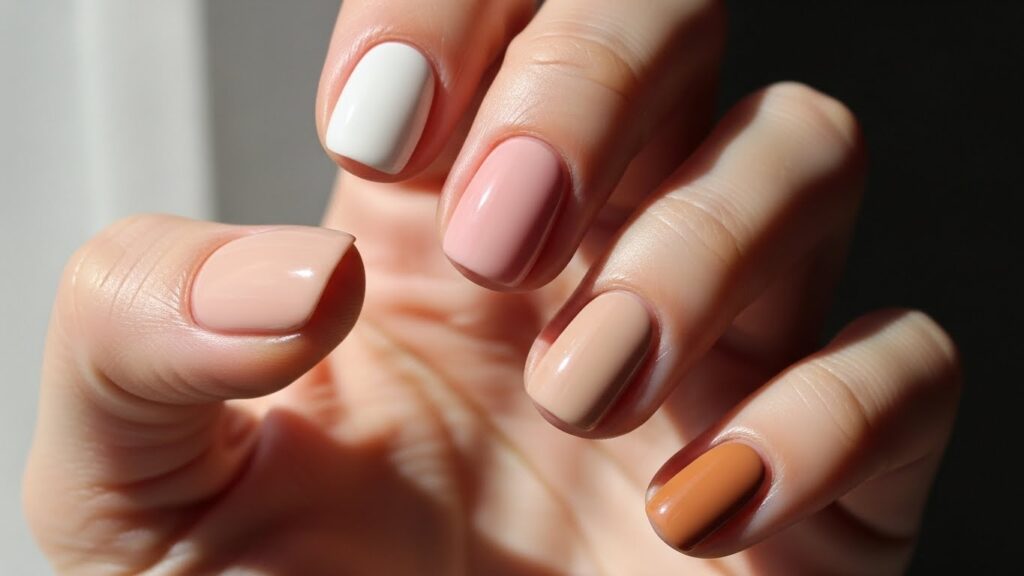 Neutral nails are leading the simple short nail designs for everyday category. Shades like cream, sand, taupe, rose beige, and milky white give the nails a clean, minimal appearance.