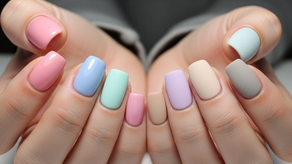 Pastels like baby blue, lavender, mint, peach, and butter yellow continue to be favorites. These shades make short nails look youthful and soft—perfect for everyday wear.