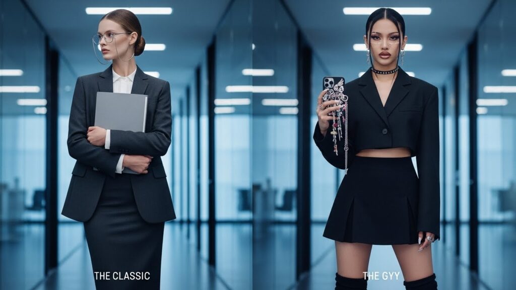 However, a split has occurred in the timeline. The trend has fractured into two distinct camps for the upcoming year: the sleek, nostalgic “Classic” (rooted in 90s minimalism) and the bold, internet-driven “Siren Office Gyaru” (rooted in digital culture and Dress to Impress gaming aesthetics). Understanding this difference is the key to mastering 2026 workwear trends.